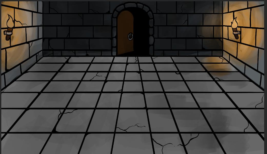 Along with this I am also working on the in combat backgrounds. Now we haven't really focused on this too much over the past semester since our main priority with the game has been implementing all the monsters and characters, so we've been using the same background from first semester. I did update it slightly, lightening the cells so the characters are no longer as muddled into the background.